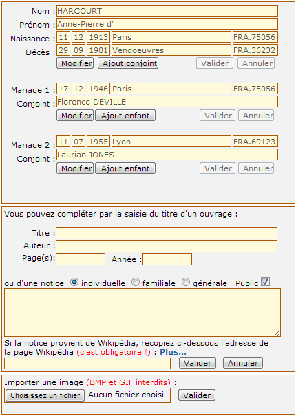 - soit d'ajouter un enfant au couple en cliquant sur le bouton "Ajout enfant"